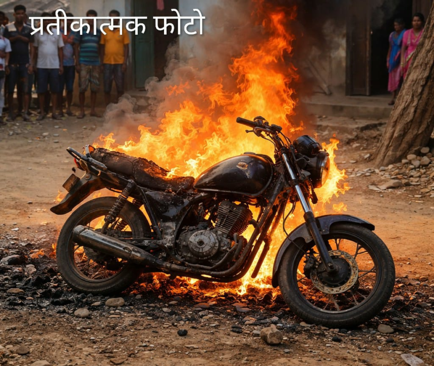 धमतरी। कुरुद क्षेत्र के अंतर्गत आने वाले ग्राम भाठागांव से एक चौंकाने वाली घटना सामने आई है, जहां एक युवक ने घरेलू विवाद के चलते गुस्से में आकर एक बाइक को आग के हवाले कर दिया। घटना शनिवार शाम की बताई जा रही है। ग्रामीणों से मिली जानकारी के अनुसार युवक का नाम राकेश जैन, पिता ज्ञानचंद जैन है, जो गांव में ही निवास करता है।