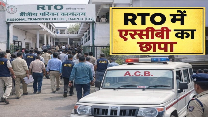 रायपुर, छत्तीसगढ़: छत्तीसगढ़ की राजधानी रायपुर में एंटी करप्शन ब्यूरो (ACB) ने आज भ्रष्टाचार के खिलाफ एक बड़ी सर्जिकल स्ट्राइक की है। एसीबी की टीम ने क्षेत्रीय परिवहन कार्यालय (RTO) में दबिश देकर एक कर्मचारी को 14,000 रुपये की रिश्वत लेते हुए रंगे हाथों गिरफ्तार किया है। इस अचानक हुई कार्रवाई से आरटीओ परिसर में अफरा-तफरी मच गई।