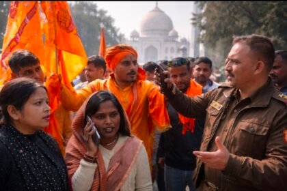 आगरा ताजमहल बिग ब्रेकिंग: भगवा ध्वज लेकर तेजो महालय जाने निकले हिंदू महासभा कार्यकर्ता, पुलिस ने रोका, भारी तकरार