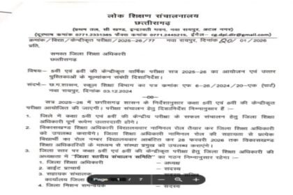 CG NEWS : छत्तीसगढ़ में सत्र 2025-26 से 5वीं-8वीं की केन्द्रीकृत परीक्षा, DPI ने जारी की गाइडलाइन