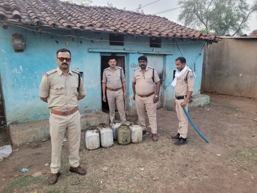 पुलिस बड़ी मात्रा में हाथ भट्टी की कच्ची महुआ शराब जब्त की गई