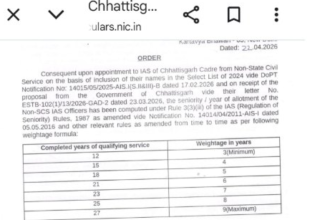 रायपुर — केंद्र सरकार के कार्मिक एवं प्रशिक्षण विभाग (DoPT) ने छत्तीसगढ़…