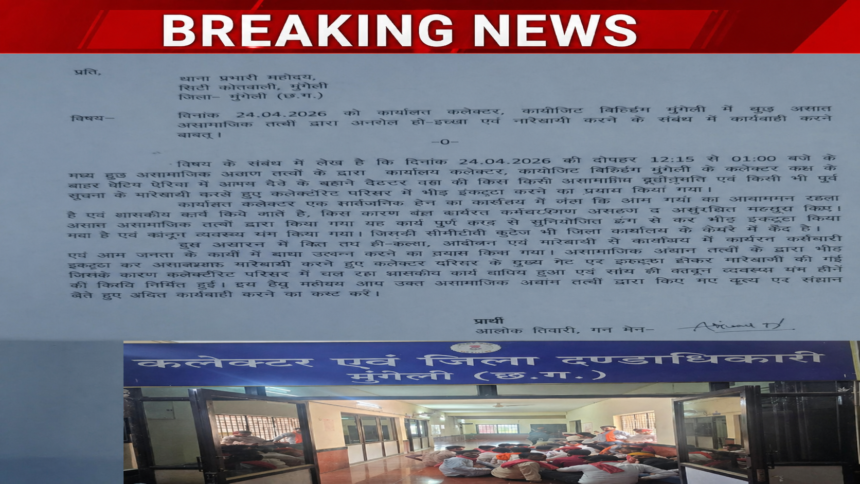 BREAKING NEWS:  मुंगेली। कलेक्टर कार्यालय से जुड़ा एक मामला इन दिनों सोशल मीडिया पर तेजी से वायरल हो रहा है, जिसने प्रशासन और आम लोगों के बीच तीखी बहस छेड़ दी है। वायरल पोस्ट्स में दावा किया जा रहा है कि कलेक्टर कुंदन कुमार ने छत्तीसगढ़ी भाषा में लिखे गए आवेदन को सार्वजनिक रूप से फेंक दिया, जिसे स्थानीय भाषा और पहचान के अपमान के रूप में देखा जा रहा है।