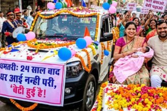 “बेटी हुई है” के नारे संग गूंजा धमतरी: 24 साल बाद जन्मी बिटिया पर निकली जश्न यात्रा