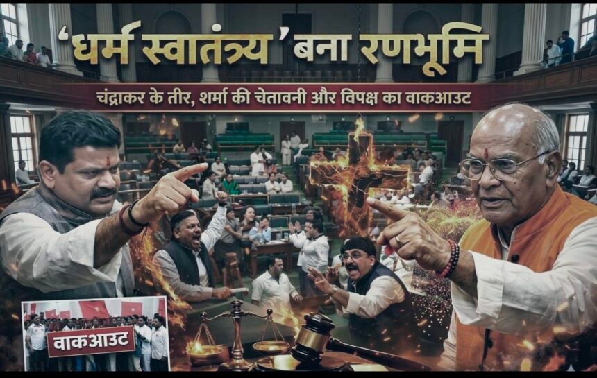 छत्तीसगढ़ विधानसभा में आज का दिन किसी बड़े सियासी थ्रिलर से कम नहीं था। एजेंडा था— ‘धर्म स्वातंत्र्य विधेयक 2026’। सदन में विधायी चर्चा तो हुई ही, लेकिन असली माहौल बना सत्ता पक्ष के ‘शब्द-बाणों’ और विपक्ष के ‘शोर-शराबे’ से। माहौल ऐसा था कि मानों सदन नहीं, वैचारिक कुरुक्षेत्र सज गया हो।