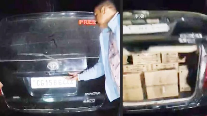 जानकारी के अनुसार, तस्कर मध्यप्रदेश से छत्तीसगढ़ में अवैध रूप से शराब की खेप ला रहे थे। शक से बचने और चेकिंग से निकलने के लिए उन्होंने लग्जरी इनोवा कार पर ‘PRESS’ लिखा हुआ था, ताकि किसी को संदेह न हो।