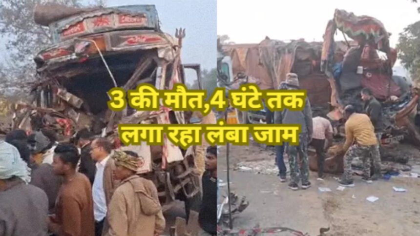 हादसे के बाद दोनों क्षतिग्रस्त ट्रक सड़क के बीचों-बीच फंस गए थे, जिससे नेशनल हाईवे-30 पर वाहनों की आवाजाही पूरी तरह ठप हो गई। सड़क के दोनों ओर वाहनों की लंबी कतारें लग गईं और यात्री परेशान होते रहे। पुलिस ने क्रेन और जेसीबी मशीनों की मदद से क्षतिग्रस्त ट्रकों को सड़क के किनारे किया। करीब 4 घंटे की कड़ी मशक्कत के बाद यातायात को बहाल किया जा सका।