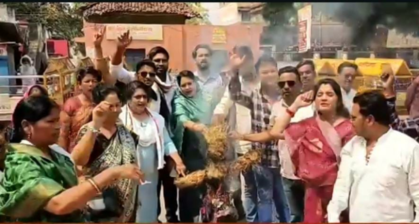 धमतरी, 13 अप्रैल। आंगनबाड़ी कार्यकर्ताओं को वितरित साड़ियों की गुणवत्ता को लेकर सोमवार को जिला कांग्रेस कमेटी एवं महिला कांग्रेस ने गांधी मैदान में विरोध प्रदर्शन किया। इस दौरान कार्यकर्ताओं ने राज्य सरकार के खिलाफ नारेबाजी करते हुए महिला एवं बाल विकास मंत्री लक्ष्मी राजवाड़े का पुतला दहन किया।