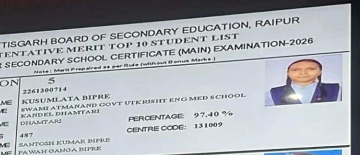 कुसुमलता की इस उपलब्धि पर शिक्षा विभाग, जनप्रतिनिधियों और आम नागरिकों ने उन्हें शुभकामनाएं दी हैं। धमतरी जिले के लिए यह सिर्फ एक रिजल्ट नहीं, बल्कि गर्व, प्रेरणा और उम्मीद की एक नई कहानी बन गई है।