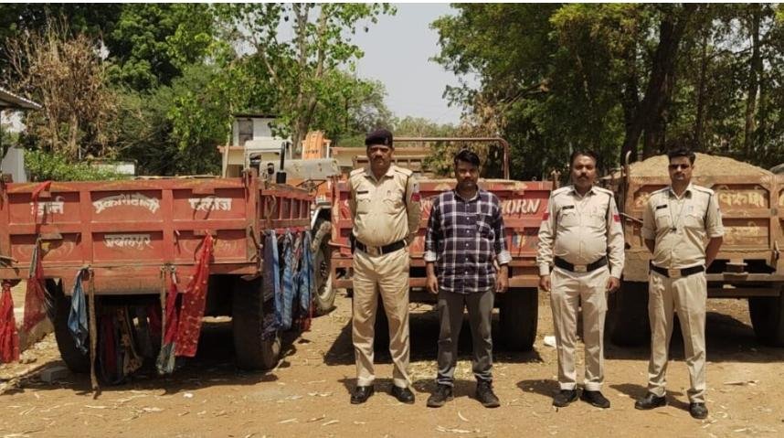 महिंद्रा 415D1 ट्रैक्टर (MP 54 AA 4090) लाल ट्रॉली सहित पकड़ा गया चालक: चंदभान गौटिया (20 वर्ष), निवासी विलायतकला