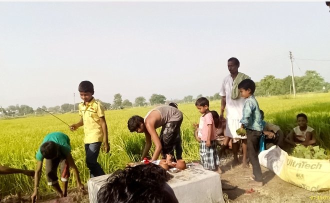 3. बीज संस्कार: बैगा द्वारा अभिमंत्रित धान को लेकर किसान सीधे खेतों में पहुंचे और बुवाई की रस्म अदायगी की।