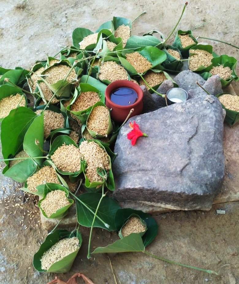 1. दोने में सौभाग्य: ग्रामीण दोने में धान, नारियल और नागर का लोहा लेकर पहुंचे।