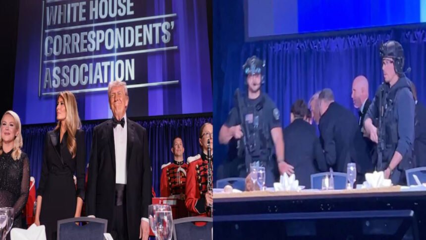 वॉशिंगटन डीसी: अमेरिका की राजधानी वॉशिंगटन डीसी में स्थित हिल्टन होटल में शनिवार रात एक बड़ी सुरक्षा चूक का मामला सामने आया है। व्हाइट हाउस कॉरेस्पोंडेंट्स डिनर के दौरान अचानक हुई गोलीबारी से हड़कंप मच गया। घटना के समय अमेरिका के राष्ट्रपति Donald Trump‘ भी कार्यक्रम में मौजूद थे। सुरक्षा एजेंसियों ने तुरंत मोर्चा संभालते हुए राष्ट्रपति और उनकी पत्नी मेलानिया ट्रंप को सुरक्षित स्थान पर पहुँचाया।