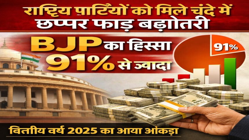 नई दिल्ली: देश की राष्ट्रीय पार्टियों की तिजोरी में इस साल रिकॉर्ड चंदा बरसा है। वित्तीय वर्ष 2024-25 के लिए चुनाव आयोग को सौंपी गई रिपोर्ट के अनुसार, राजनीतिक फंडिंग में अप्रत्याशित बढ़ोतरी दर्ज की गई है। आंकड़ों के विश्लेषण से पता चलता है कि कॉर्पोरेट और व्यक्तिगत चंदे के मामले में भारतीय जनता पार्टी (BJP) अन्य सभी राष्ट्रीय दलों से मीलों आगे निकल गई है।