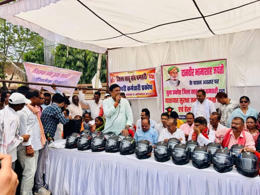 धमतरी। दानवीर भामाशाह जयंती के पावन अवसर पर इस बार धमतरी में सामाजिक जागरूकता का एक सशक्त उदाहरण देखने को मिला, जहां जिला साहू समाज युवा प्रकोष्ठ के नेतृत्व में “यातायात जागरूकता रैली एवं हेलमेट वितरण” जैसे सार्थक कार्यक्रम का सफल आयोजन किया गया। पूरे आयोजन का श्रेय युवा प्रकोष्ठ की सक्रियता और नेतृत्व क्षमता को दिया जा रहा है, जिसने समाज में सकारात्मक संदेश देने का काम किया।